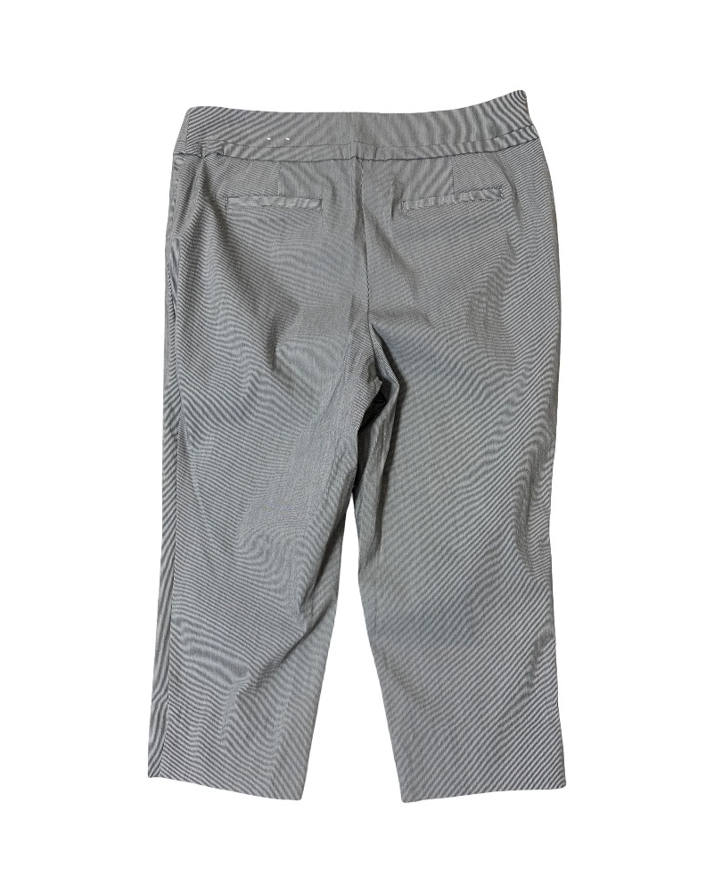 Up for your consideration is a pair of crop length pants from Dalia in. women's size 16W. They are a blue and white seersucker materials. . Measurements: Inseam 23", Outseam 33.5", Waist 18" across, Rise 11.5" from hem to crotch seam They are in excellent condition. I am downsizing, which means I will have lots more clothing I am listing over the next couple weeks. Please check back in or favorite my store for updates when they post. The material content is not available, but these do have stretch to them and hang very nicely.