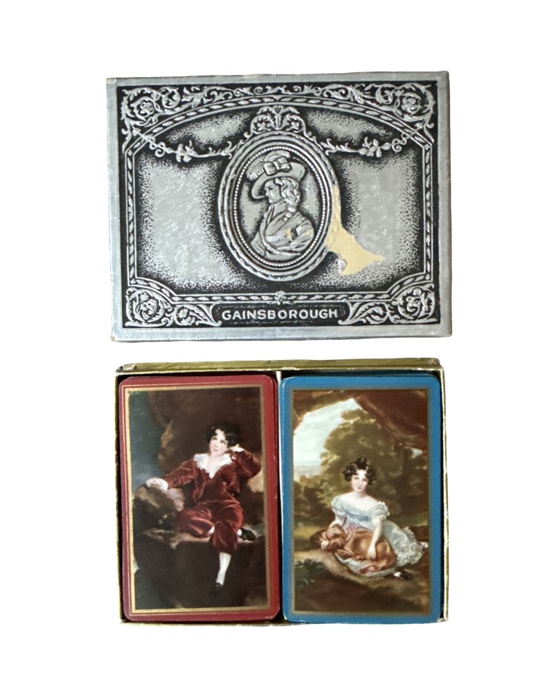 Up for your consideration is a double deck of playing cards. They feature victorian inspired cards. They are in nice used condition, but do show some wear to the card edges and to the box.