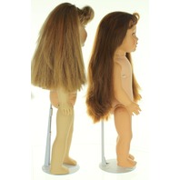Up for your consideration is a Madame Alexander 18" doll and a Geoffrey Journey girl. One Blond one Brunette. Both dolls are in nice gently played with condition with normal body marks from storage, age, and clothing fade. They both have open and close eyes as well. No neck ties on the Journey Girl. Please look at all photos to see condition. Stands not included.