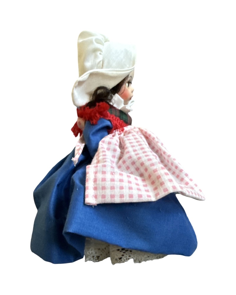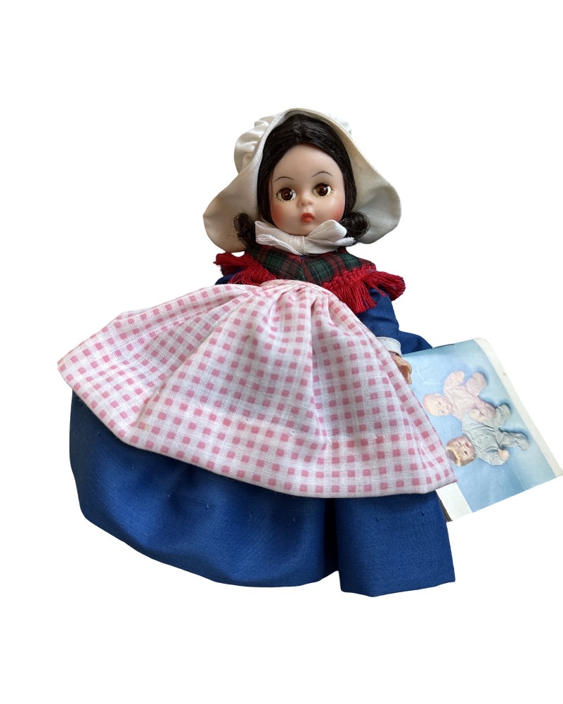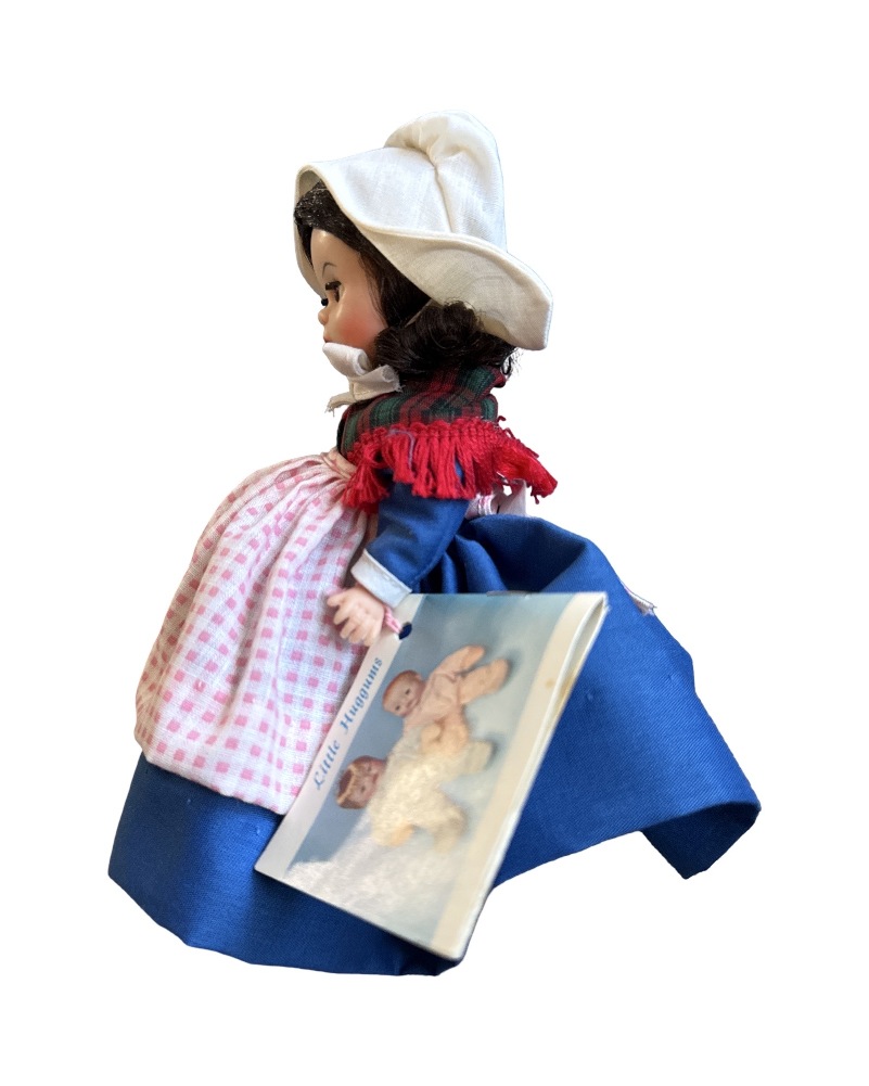 Up for your consideration is a Madame Alexander doll with original clothing. She is adorable with crisp colors and a pouty little face. Measures 8" tall. Very nice condition. Please note, doll stand is not included in the listing. The box may show signs of wear from storage and age.