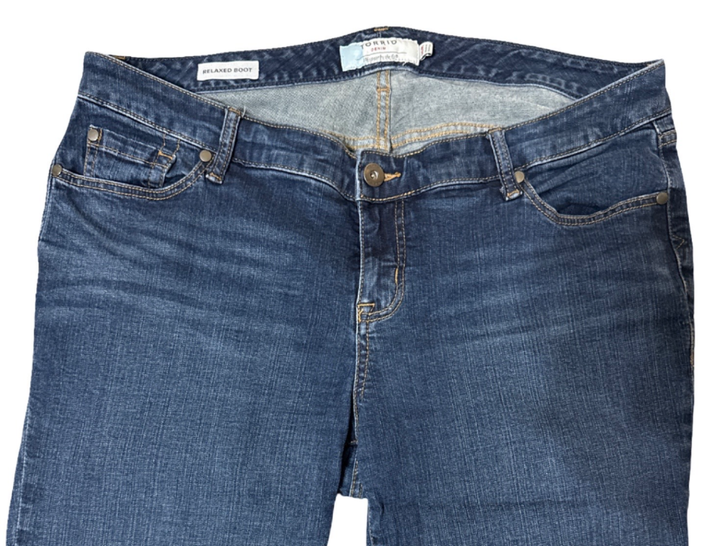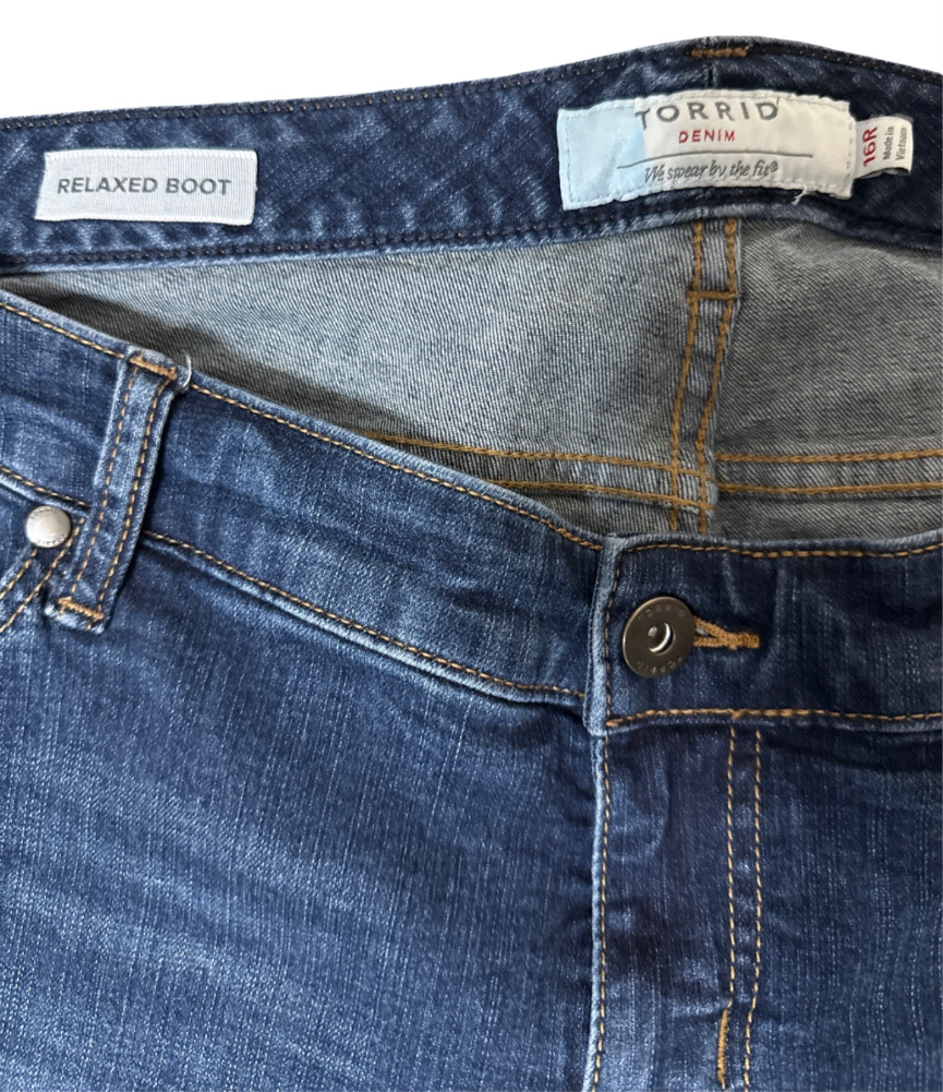 Up for your consideration is a pair of pants from Torrid in a women's size 16R. They are a dark denim color and a Relaxes Boot Cut. Measurements: Inseam 31", Outseam 42", Waist 20.5" across, Rise 14" from They are in excellent condition. I am downsizing, which means I will have lots more clothing I am listing over the next couple weeks. Please check back in or favorite my store for updates when they post. The material content 98% Cotton, 2% Spandex.
