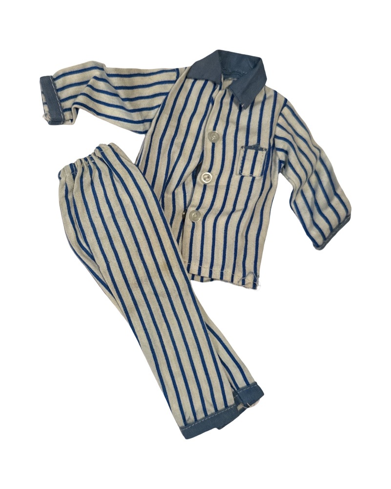 Up for your consideration is a Ken sized blue and white striped pajamas set. It does not have a tag but fits a Ken sized doll. It is in nice gently played with condition.