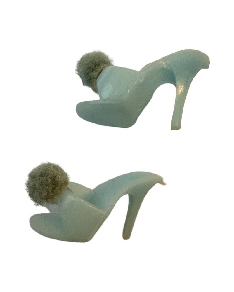 Up for your consideration is a pair of soft blue pump heels with blue pom-poms. They are in very nice gently used condition.