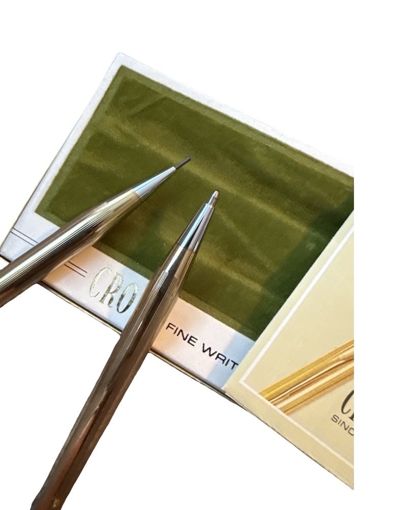Up for your consideration is a Cross Pencil/Pen Set. It is in nice gently used condition. The set is in the oriring box, however the elastic is lose where the pens are stored. It comes on a green velveteen material. Each pen is stamped with .5 12KT Gold Filled. Both work Comes in original box, please note there is wear to the outer box from storage and age.